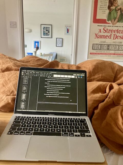 Time and space – Lockdown was horrendous for everyone, but during this time, I created a daily writing habit; I cleared out my mum’s caravan and went to it to write after breakfast every day. That worked well, but then I discovered the least distractions from waking up to writing was the best way forward. So, I invested in a writing desk for my bed. So when I’m in my routine, I lie there like a sloth, tapping away until my word count is done, and then I get on with my day.