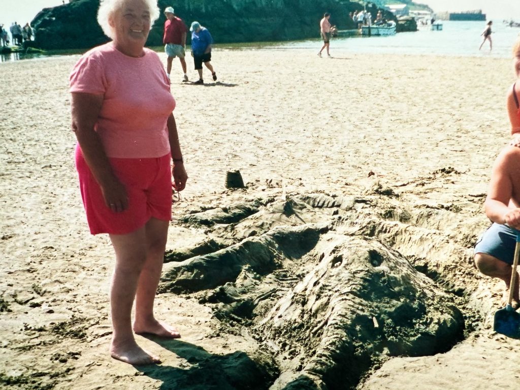 One rare sunny day in summer, the family decided to have a sandcastle competition. My brothers were a team, my parents were a team, and I was paired with my Aunt Jen. Gran Pat was the judge.