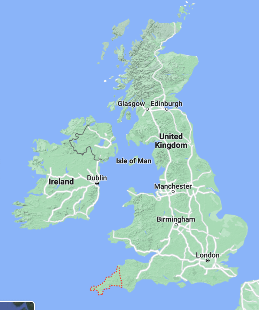 For those who don’t know Cornwall, it’s located in the pig’s trotter of the United Kingdom.