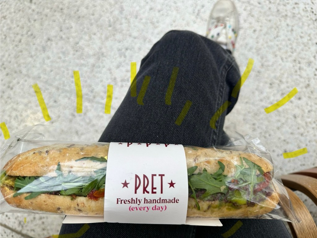 When the trolly came down the aisle for lunch, I felt I should take part in the communal feast, so I reached down to get my avocado-sundried-tomato baguette and saw Mr Middle’s BARE HAIRY FOOT…resting on my Pret bag.