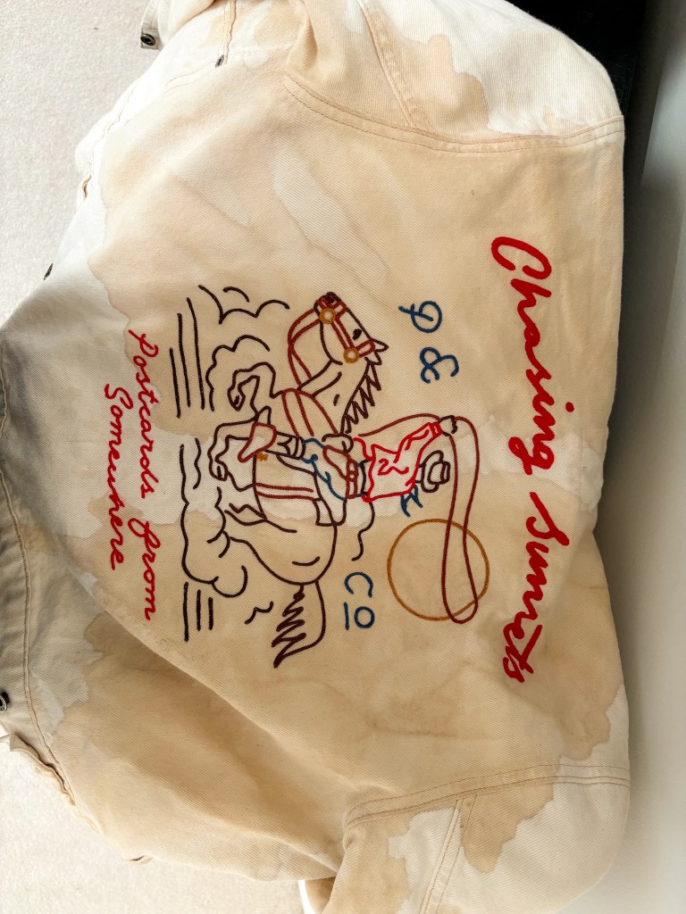 To prepare for the night, I went to Cos and bought an organic cotton red T-shirt and some earrings. I completed my outfit with my favourite cream denim jacket with a cowboy stitched in the back.