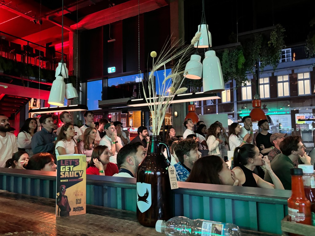 Eve had joined the football bandwagon at the semi-finals, and was the one organised enough to book a table to watch the game. The table was at Brew Dog – a craft beer bar with LED lighting that sells beers named Elvis Juice and Candy Kitten.