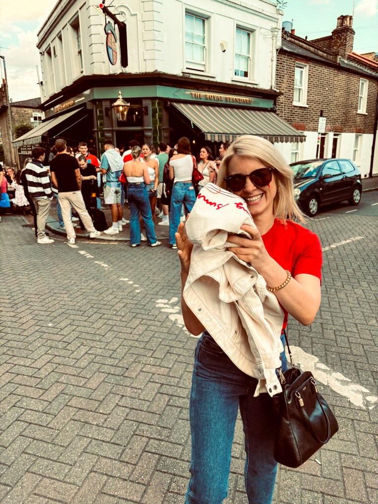 The Royal Standard in Wandsworth Town was a wash of people in red and white, from a distance, it looked like a scene from Handsmaid’s Tale. My brother Jack was there, and his friend from Texas had one of those tattooed sleeves. The Texan had ridden a cow in a rodeo, owned a thousand-dollar cowboy hat, and liked to eat steak and egg for breakfast. He also couldn’t care less about the football. If this was a musical, he would have a solo. (Something about being a lost cowboy in England).