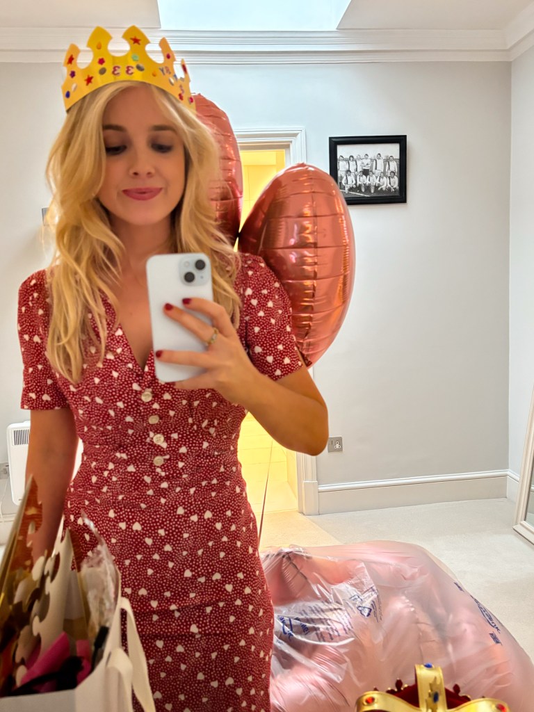 This year, I ordered them all to a room at The Duchess on Duke Street in London. To save money, I bought a single ‘3’ balloon, and put it by the mirror to make a 33. You’ve got to make the most of being a palindromic number whilst you can.