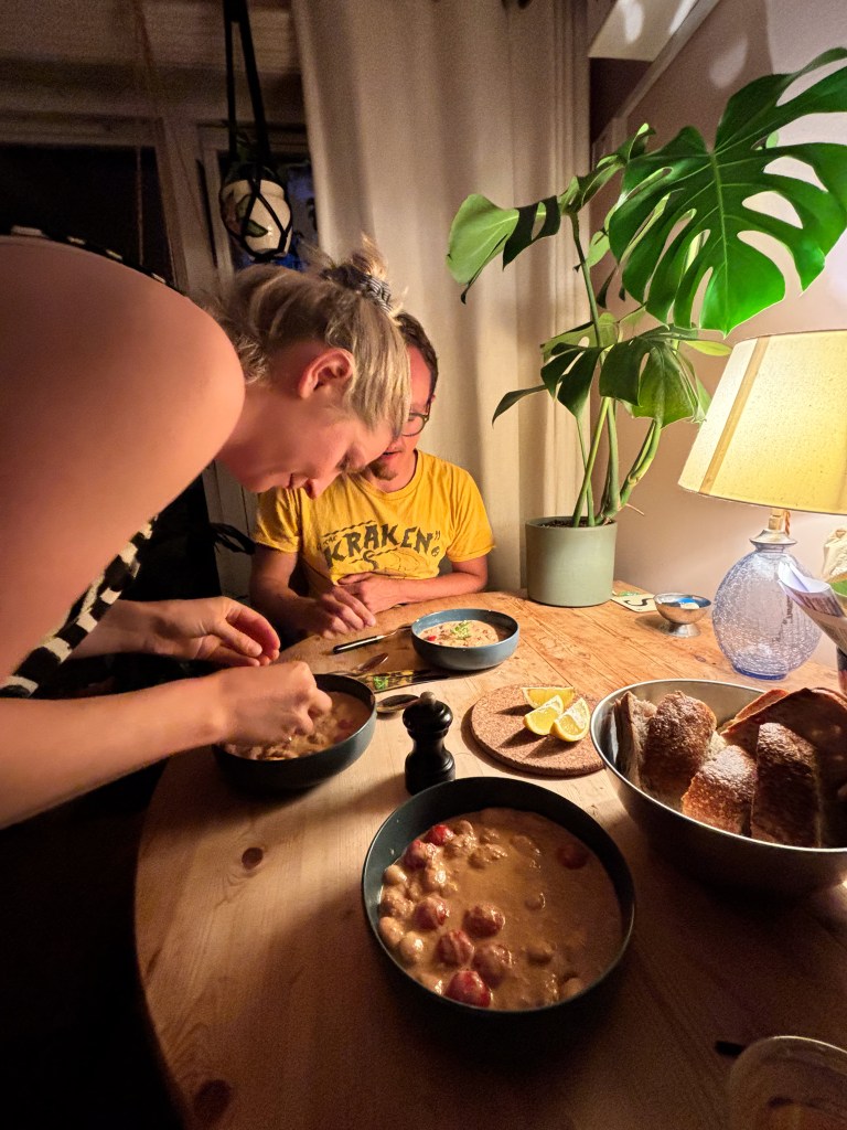 I went to Hermione and Sam’s for dinner. After reading a book about the climate crisis, Hermione converted to a vegertarian and now she’s a slave to the bean. The other week we planned to meet for coffee, but I got ditched at the last minute as Hermione claimed she needed to soak her chickpeas instead. It reminded me of the time a man said he couldn’t see me on the weekend because he had to do his laundry.