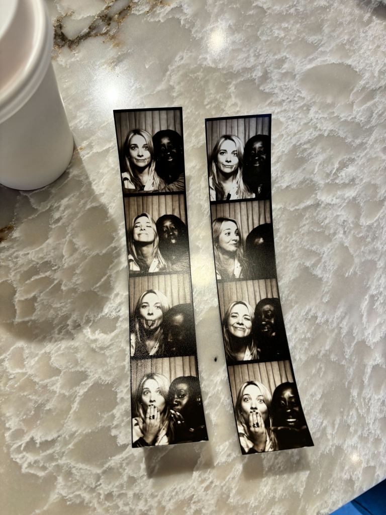 When each pair stepped out of the booth, they came with a tip on how to use it: You can only see yourself in the reflection. Change your pose as soon as it flashes. There are four photos. You only get one strip.