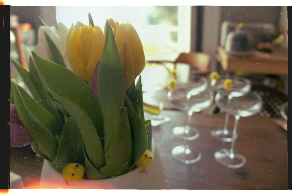 The house was decorated with tiny yellow chicks and bouquets of tulips. Hot-cross buns were being toasted and buttered at all hours of the day, and the smell of rosemary lamb would drift from the kitchen.