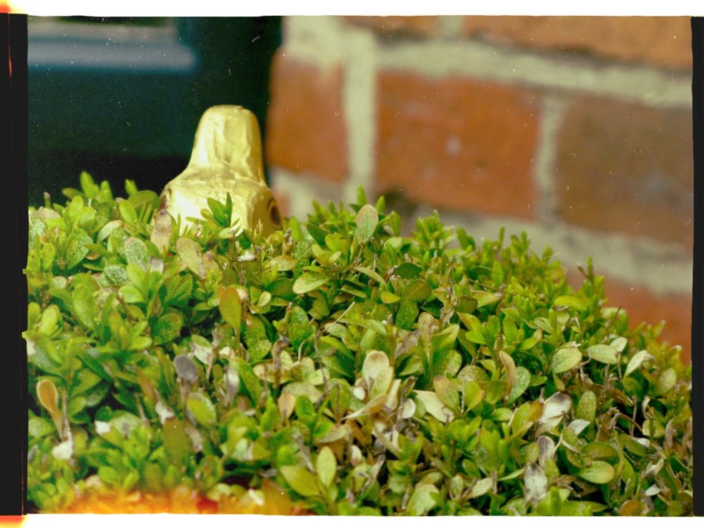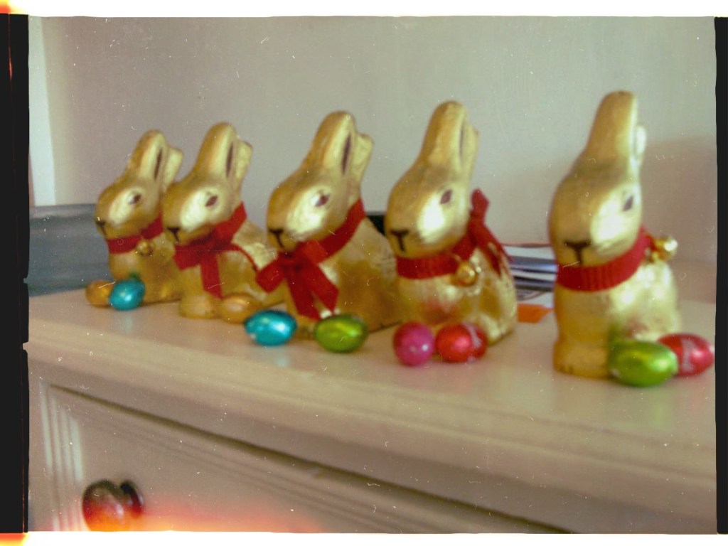 And we were off, charging into the garden, arms chopping the breeze, frantically pulling branches apart. We’d pick crème eggs from bushes, and find Lindt bunnies in trees, all the while going back and forth to the table, building up the collection of chocolate treasure.