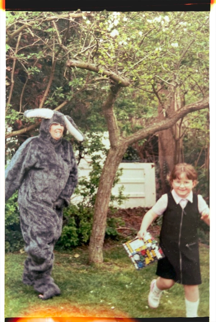 1997 was a memorable year because the Easter Bunny made a special appearance. (We all could see it was Mum’s friend Lesley in a costume).